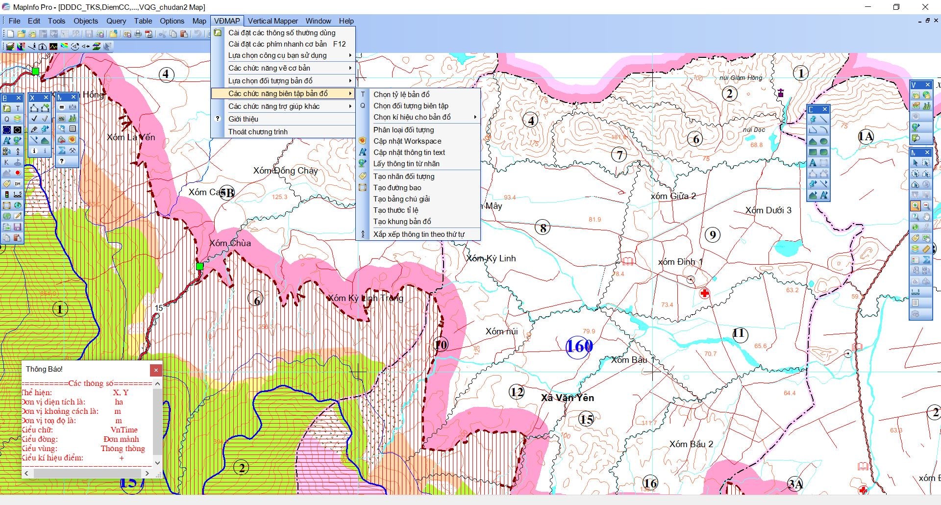 Để tự động hoá việc giao tiếp giữa các quá trình thành lập bản đồ số, chúng tôi đã nghiên cứu thiết kế và cho ra đời công cụ VĐMap là một chương trình phần mềm trợ giúp trong quá trình thành lập các loại bản đồ số. Các công đoạn cũng như thời gian thành lập bản đồ số được rút ngắn, tiết kiệm thời gian, công sức và đảm bảo tính chính xác, thống nhất của dữ liệu. Công cụ VĐMap chạy trong môi trường Mapinfo với hệ thống menu, thanh công cụ và hộp thoại bằng tiếng việt, có hướng dẫn sử dụng kèm theo nhằm giúp sử dụng phần mềm được thuận tiện và dễ sử dụng.